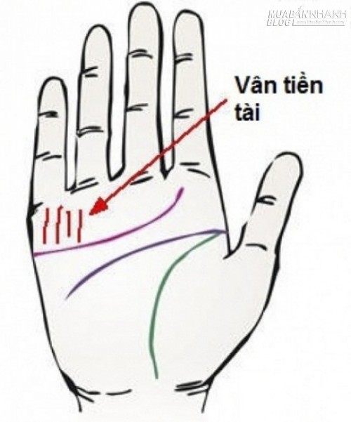 Vị trí vân tiền tài trên bàn tay nữ giới nằm ở giữa ngón tay út và ngón tay đeo nhẫn. Đường vân này vừa nhỏ vừa mảnh, phải nhìn kĩ mới thấy. Đây là tướng tay dễ lấy chồng giàu sang, điều đáng mơ ước của bất cứ cô gái nào. Người này sống cuộc đời vinh hoa phú quý, không phải lo lắng về tiền bạc.