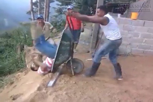 Anh chàng đang nằm ngủ ngon lành thì bỗng lộn cổ xuống ao vì bị nhóm bạn thân phá.