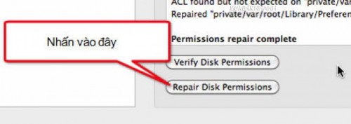 - Tiếp tục chạy lệnh diskutil repairPermissions để giúp hệ điều hành đạt hiệu năng tốt hơn. Nếu không muốn chạy lệnh trên Terminal, bạn có thể vào Applications > Utilities > Disk Utility và nhấn vào tùy chọnRepair Disk Permissions.