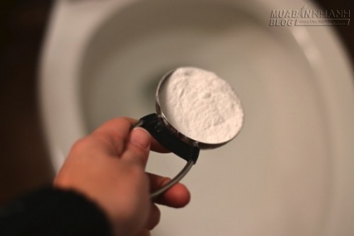 - Trước khi đi ngủ, đổ 1/2 hộp baking soda vào bồn vệ sinh rồi để qua đêm.