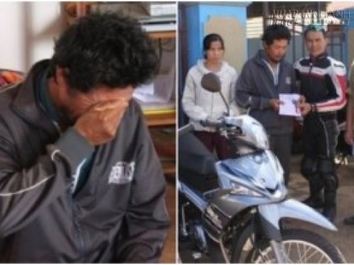 Được tặng xe máy, người cha tìm con mất tích bật khóc vì xúc động