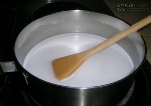 Công thức làm dầu dừa tại nhà vô cùng đơn giản. Mua cùi dừa đã nạo sẵn ngâm vào nước sôi với tỉ lệ 1 kg dừa với 500ml nước sôi. Ngâm hỗn hợp trong khoảng 15 phút khi nước nguội bớt rồi dùng tay bóp bỏ cùi dừa, chắt lấy nước. Lọc lại nước 1 lần qua rây hoặc khăn. Sau đó, cho nước cốt đã lọc vào đun sôi. Đảo đều tay, không sẽ bị cháy ở đáy. Khi nước cạn dần và lớp cạn phía dưới chuyển sang màu vàng nâu thì có thể tắt bếp và chắt lấy dầu dừa.