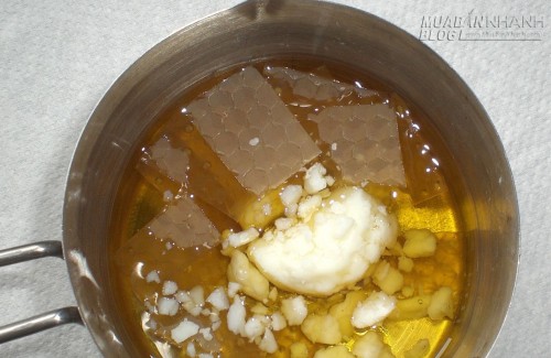 - 600g sáp ong (bạn có thể mua tại công ty ong mật, cửa hàng bán sản phẩm ong mật hoặc các trang mạng trên internet)