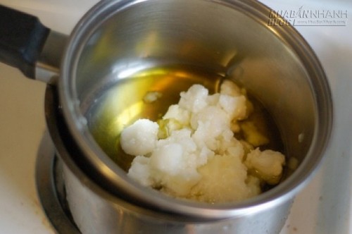 2) Đun dầu nền, bơ, cetyl alcohol và chất nhũ hóa trong một nồi hấp khác cho đến khi hỗn hơp tan hết, khoảng nhiệt độ 145 độ F. Sau đó chờ nhiệt độ hạ xuống 135 độ F.