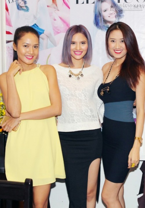 Chân dài Quanh Đi (váy vàng) và Trâm Anh tới chung vui với người mẫu quê Thanh Hóa.