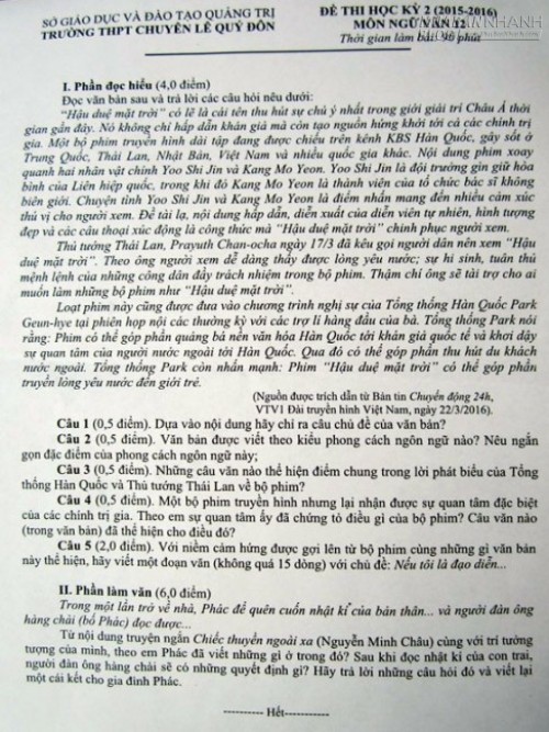 Đề thi môn văn của trường THPT chuyên Lê Quý Đôn gây tranh cãi.