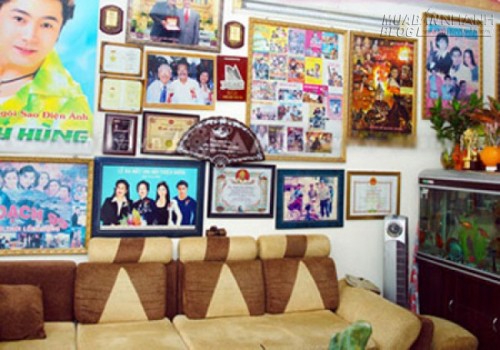 Phòng khách trưng bày nhiều bằng khen, giải thưởng, ảnh kỷ niệm thời đóng phim của cha con Lý Hùng
