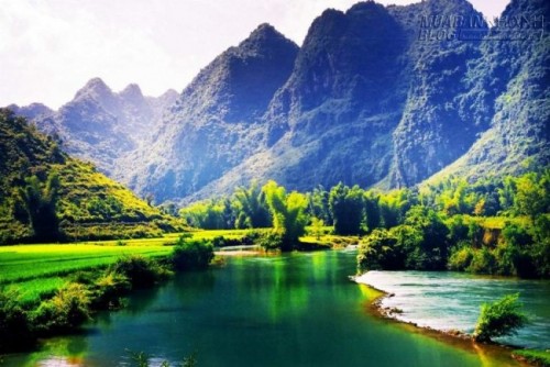 Phong cảnh nên thơ xung quanh thác Bản Giốc. Ảnh: Phạm Thành