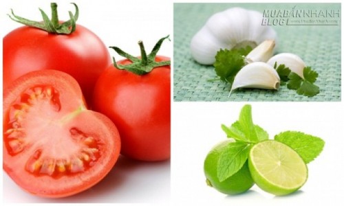 Bước 1: Bóc tỏi cho vào máy xay sinh tố cho thêm vào đó 2 quả cà chua rửa sạch, 6 thìa nước cốt chanh, 500ml nước, 8 viên đá nhỏ.