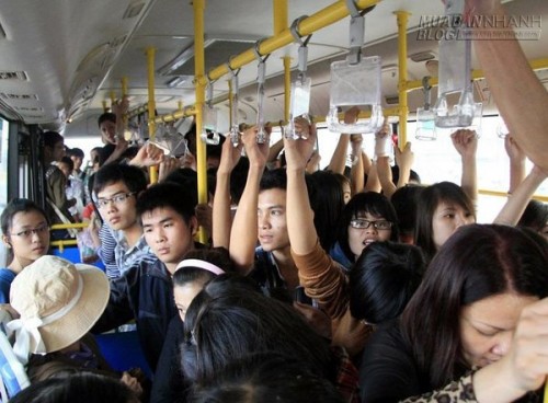 Xe buýt đông đúc là nơi các đối tượng cướp giật chuyên dàn cảnh chen lấn, xô đẩy để lấy cắp tài sản chuyền cho đồng bọn – (Ảnh minh họa).