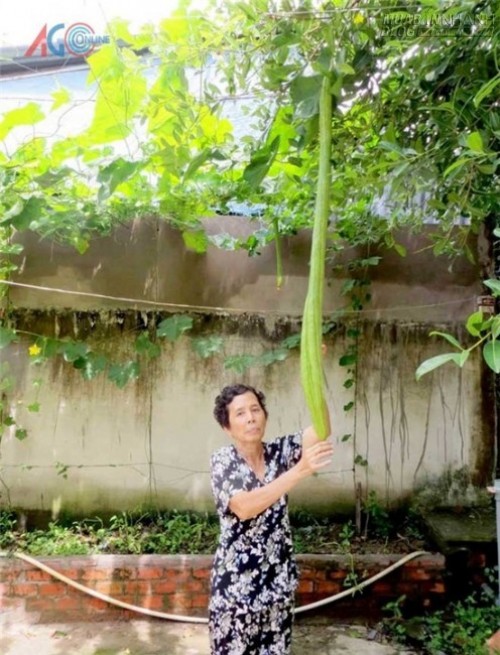 Năm 2014, giàn mướp của một gia đình tại thị trấn Phú Hòa, Thoại Sơn bất ngờ ra nhiều trái và điều kì lạ là những trái mướp này rất dài. Bình quân mỗi trái dài hơn 1 m, trái dài nhất là khoảng 1,3 m. (Ảnh: Báo An Giang)