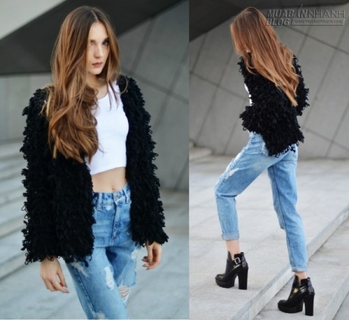 Áo len lông những năm gần đây được đánh giá là món đồ cần phải có đối với mọi cô nàng mê thời trang, nhưng kết hợp áo len lông với croptop, jeans rách như thế này thì không phải bạn gái nào cũng dám thử.