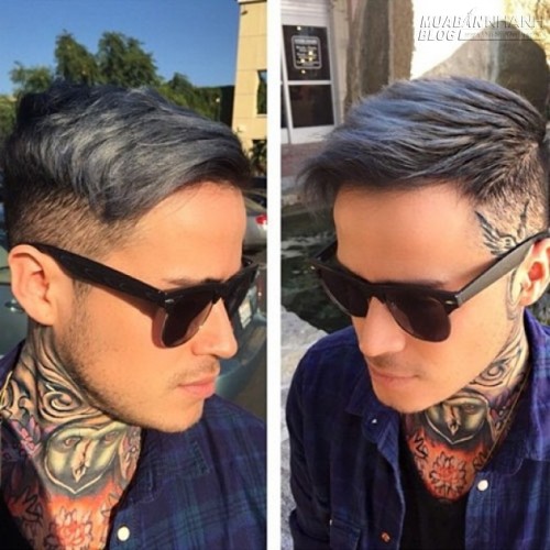 Nếu bạn đang tìm kiếm một kiểu tóc cực kì cá tính và khác biệt, bạn có thể thử để kiểu tóc như anh chàng ở trên với kiểu tóc undercut cá tính với phần tóc ở đỉnh đầu được nhuộm xanh bạc. Kiểu tóc này phù hợp với những bạn nam có mái tóc thẳng dày hoặc tóc thô, xoăn.