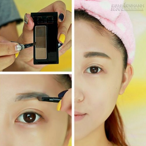 Dùng bột màu nâu tán lông mày theo khuôn hình định sẵn ở bước trên. Màu nâu sẽ giúp lông mày của bạn trông không quá đậm dễ làm mặt bị già đi