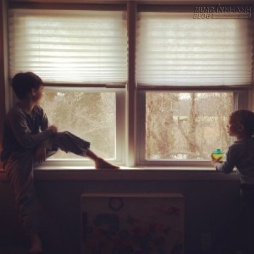 Đây là tấm hình tôi chụp những đứa con tôi đang ngồi bên cửa sổ, quan sát những chú chim. Khoảng 5 phút trước khi chụp tấm hình này, đứa lớn đã giật lấy chiếc gậy khúc côn cầu từ đứa nhỏ, hét lên: "Em ý ăn gian", (đứa nhỏ mới chỉ có 2 tuổi thôi). Và ngay sau đó, đứa nhỏ loay hoay dưới sàn cố lấy cái gậy của nó đang bị kẹt dưới cái bàn chơi. Nó không thể lấy ra, nhưng cũng không chịu để ai giúp.