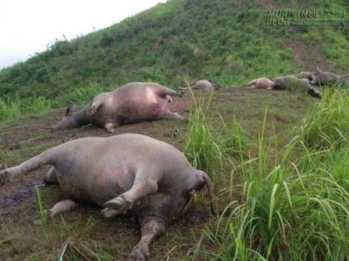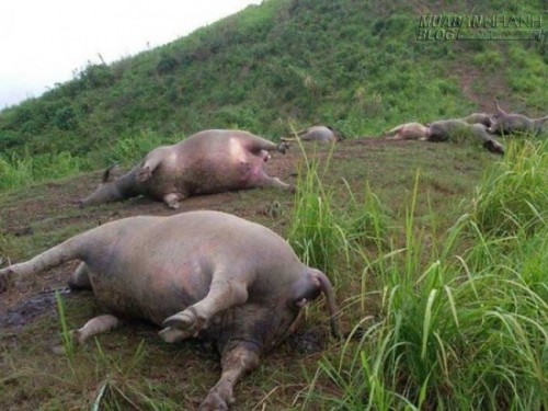 Được biết, đàn trâu bị chết trước đó được thả tự do tại bãi chăn thả tập trung, vài ngày chủ trâu mới đến kiểm tra một lần. Đàn trâu chết trong phạm vi khoảng 50 m2 trên khu đất trống không có cỏ, bụng trương phình và thâm tím theo từng mảng, mồm có vết máu. Trong số trâu chết có 4 con đang mang thai. Ước tính thiệt hại khoảng 600 triệu đồng.