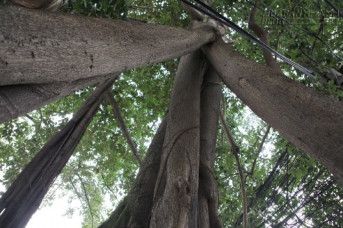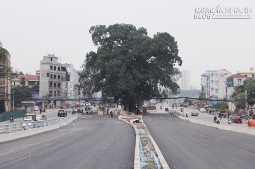Cây đa cổ thụ có tuổi đời hàng trăm năm không bị chặt bỏ mà được BQL giữ lại, giờ đây nằm giữa dải phân cách đoạn đường dẫn lên cầu vượt đường Bưởi – Võ Chí Công.