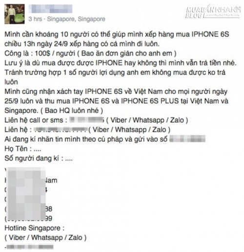 Hai triệu đồng cho một chỗ xếp hàng mua iPhone 6s ở Singapore, 52097, Nguyễn Thu Hương Blog MuaBanNhanh