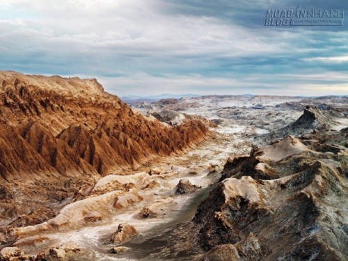 Valle de la Luna (thung lũng Mặt Trăng), Chile: Cảnh quan ở đây đúng như tên gọi, trông giống như trên mặt trăng với những đỉnh núi lởm chởm, sông ngòi khô cạn.
