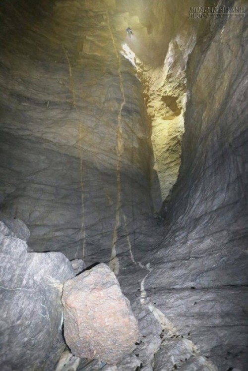Lần thứ nhất, chàng trai Hà thành đi tiền trạm với sự giúp đỡ của một thanh niên bản địa gốc Hoa. Xuống tới 80 m, anh đành bỏ dở vì không mang đủ dây.