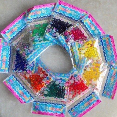 Chỉ cần ghé vào một quán bán hàng bên cạnh các trường tiểu học, bạn sẽ dễ dàng mua được một gói hạt nhựa nở (45 hạt) chỉ với giá vài ngàn đồng.