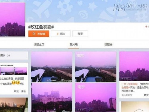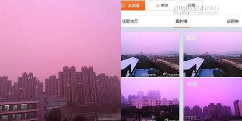 Người dân Trung Quốc chia sẻ trên các trang mạng xã hội về màn sương mù màu tím do ô nhiễm không khí.