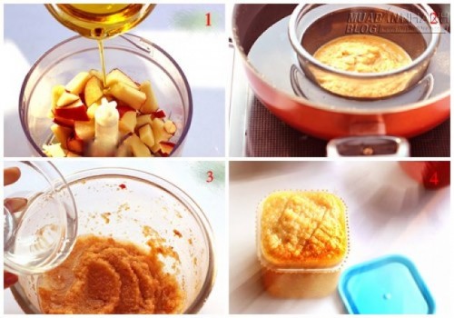 Bước 2: Cho táo vào máy xay sinh tố, thêm dầu oliu rồi xay nhuyễn hỗn hợp.