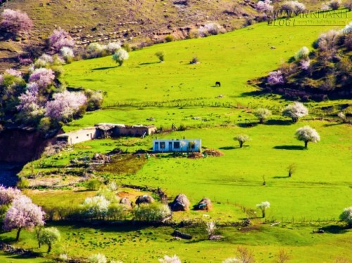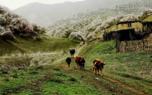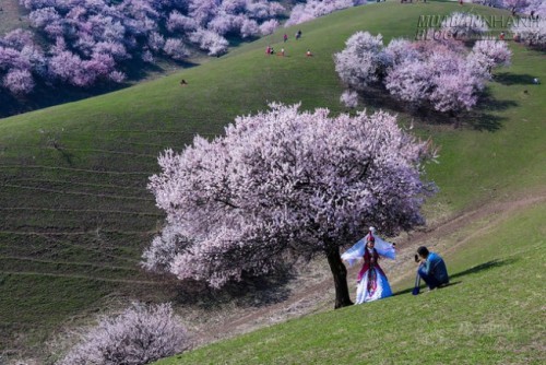 Hoa mai phủ hồng thảo nguyên ở Tân Cương