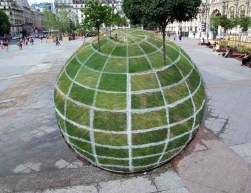 Thoạt nhìn, có vẻ đây là một quả cầu cỏ khổng lồ ở bên ngoài tòa thị chínhParis nhưng thực ra, chúng là một mặt phẳng.