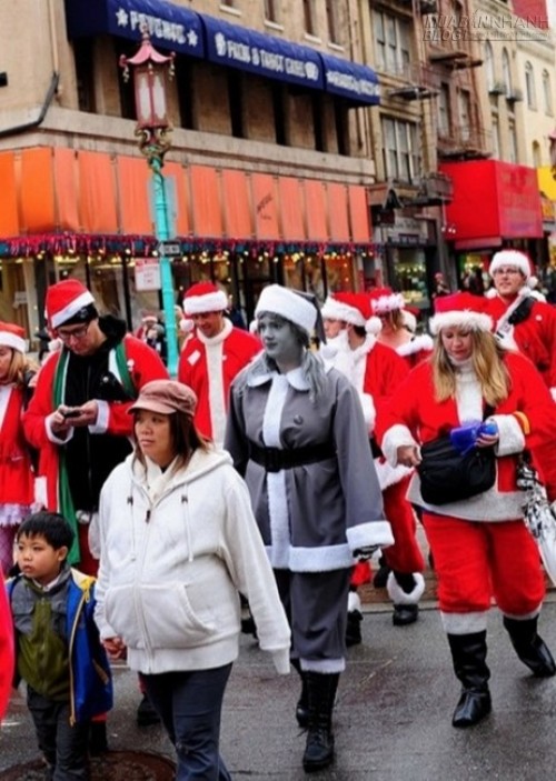 Cô gái mặc bộ đồ ông già Noel màu đen thật ra không phải do photoshop mà nhờ vào cách trang điểm và trang phục khác người.