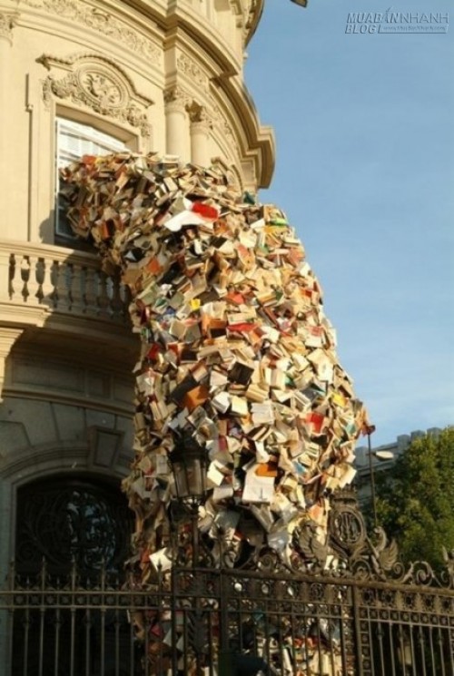 Họa sĩ người Tây Ban Nha Alicia Martin đã tạo nên một dòng chảy với hàng ngàn cuốn sách từ ô cửa sổ xuống mặt đường gây sửng sốt cho người qua lại.