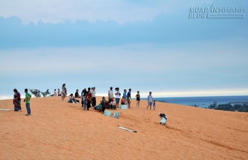 Không chỉ những ngày cuối tuần, đồi cát bay ở Mũi Né, Phan Thiết ngày nào cũng tấp nập khách thăm quan, trong đó có rất nhiều du khách nước ngoài. Trò chơi được ưa thích nhất ở khu vực này là môn trượt cát với những tấm ván trượt bằng nhựa mỏng, một đầu được cột hai sợi dây dù dùng để giữ tay, tạo thế thăng bằng.