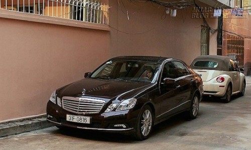 Hoàng Thùy Linh đang đi chiếc xe Mercedes E-class đời 2012, giá khoảng 2 tỷ đồng.