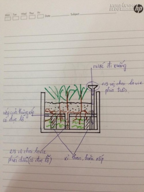 Các bước rất đơn giản nhưng mọi người khi trồng rau sạch tại nhà không phải tưới nhiều, tiết kiệm tiền làm thùng, tiết kiệm nước, khống chế được việc nước chảy tràn ra sàn gây ngấm sàn. Ngoài ra, đất thì luôn ẩm nhờ nước được bốc hơi dẫn lên trên nhờ đoạn chai đục lỗ ở giữa.