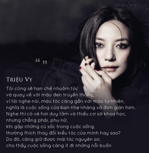 Cuộc sống hạnh phúc nhất là gì? Chính là một cuộc đời đơn giản, không tô vẽ, không cầu kỳ và luôn biết bằng lòng với mọi thứ. Có thể Triệu Vy không khuyên các cô gái trên thế giới này nên để tóc đen, ý của mỹ nhân này chính là các cô gái nên học cách nghĩ ít đi, bớt nhạy cảm và ngừng suy diễn để tự mình lại làm khổ chính mình.