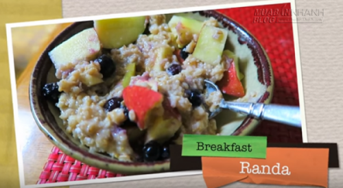 Yến mạch trộn với việt quất và táo. Bạn có thể mua yến mạch tại siêu thị cũng như thay thế bằng các loại trái cây ít đường khác, trừ quả bơ.