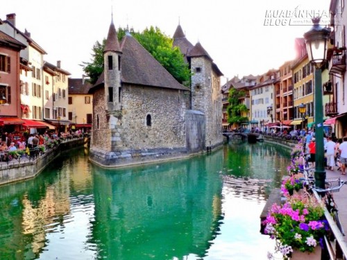 Thị trấn cổ Annecy ở Pháp có vẻ đẹp lãng mạn với những ngôi nhà, quán cà phê sơn màu pastel nằm kề bên mặt hồ. Ảnh: Flickr/Geling.