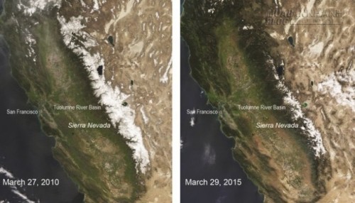 Thật vậy, các chuyên gia của Viện nghiên cứ Trái Đất đã tiến hành đo đạc độ dày lớp tuyết trên dãy Sierra Nevada và phát hiện chúng đã cán mức thấp nhất trong vòng 500 năm qua. Thông thường, khối lượng nước được chứa trong tuyết trên dãy Sierra Nevada có thể cung cấp một phần ba trong tổng khối lượng nguồn cung cấp nước của tiểu bang California nếu chúng tan chảy vào mùa xuân.