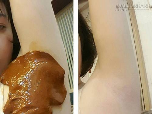 Cách 2: Cầm cả khối hỗn hợp to, lăn đi lăn lại quanh nách, hoặc ấn chặt vào nách rồi giật mạnh ra, từ từ lông nách sẽ sạch, không còn cọng lông tơ nào.