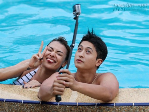 Ở hồ bơi, Hồng Quế cũng có những giây phút vui vẻ với Khả Ngân (trái) và Lily Nguyễn. Cả ba rôm rả trò chuyện về tình yêu. Khả Ngân bắt Lily phải thú nhận chuyện tình cảm của người đẹp này với Vĩnh Thuỵ. Cô còn trêu Lily đây là chuyện tình tay ba vì Lâm Chi Khanh cũng rất thích Vĩnh Thuỵ.