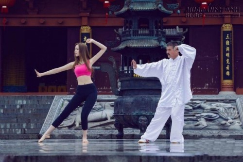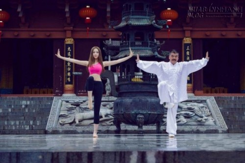 Tuy nhiên, mới đây Giai Mỹ lại gây “bão mạng” sau khi những hình ảnh cô nàng tập Yoga và thể hiện động tác Thái Cực Quyền với bộ trang phục hở hang tại chùa cùng một đạo trưởng ở Long Hổ Sơn, Giang Tây, Trung Quốc.