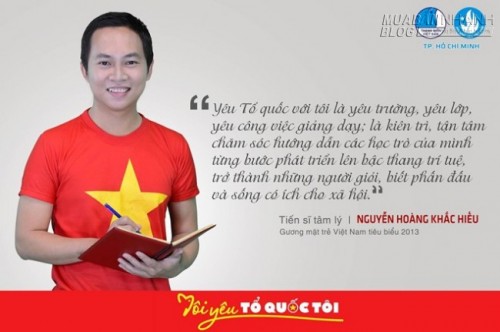 Tiến sĩ tâm lý Nguyễn Hoàng Khắc Hiếu cho rằng, yêu Tổ Quốc là yêu công việc giảng dạy, tận tâm với nghề giúp học trò trở thành những người giỏi, biết phấn đấu và sống có ích cho xã hội.