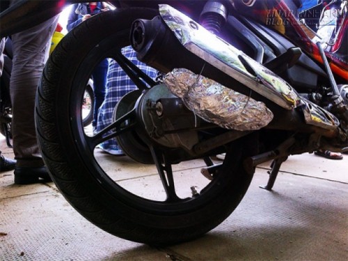 Lưu ý đối với những xe máy có bô được che chắn bằng miếng bảo vệ bên ngoài, bạn có thể buộc giấy bạc bọc thịt bên dưới bô.