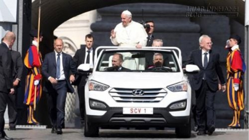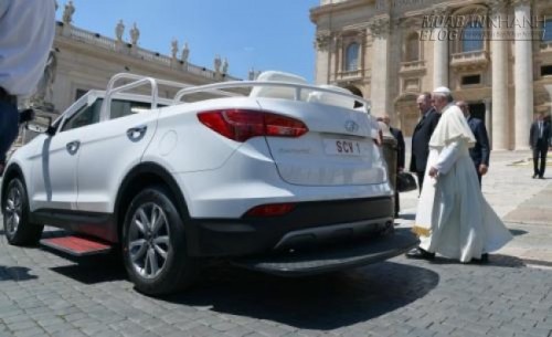 Giáo hoàng Francis xuất hiện cùng chiếc Hyundai Santa Fe mui trần độc nhất vô nhị.