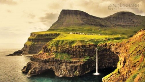 Bồ công anh hoa mịn như lông ngỗng mọc tràn xuống cả bờ vách đá. Chỉ cần một cơn gió thổi nhẹ, những cánh hoa trắng mỏng lập tức bay lên, xoay tròn. Vách đá màu xám đen chia tầng khắc khổ, khô cứng vậy mà lại là chốn cư ngụ của hoa dại và hàng vạn tổ chim biển.