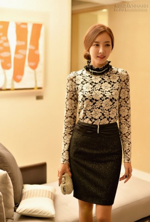 ao ren 110 Kết hợp chân váy bút chì cùng áo ren cho những ngày đông.