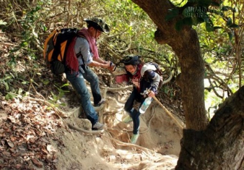 Giúp nhau qua một đoạn dốc hiểm trở.