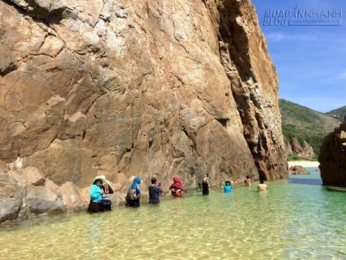 Lội xuống biể để khám phá những bí ẩn mới. Ảnh: Nguyễn Thị Thanh Tâm.