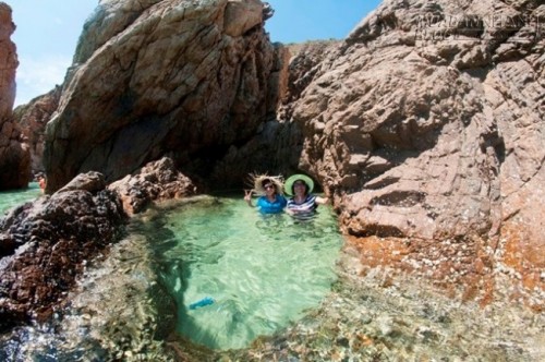 Một hồ nước tự nhiên được tạo thành bởi những vách đá và sóng biển. Ảnh: Nhi Nguyễn.