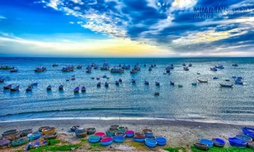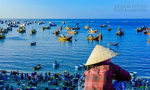 Khung cảnh tấp nập tàu thuyền tại làng chài Mũi Né |